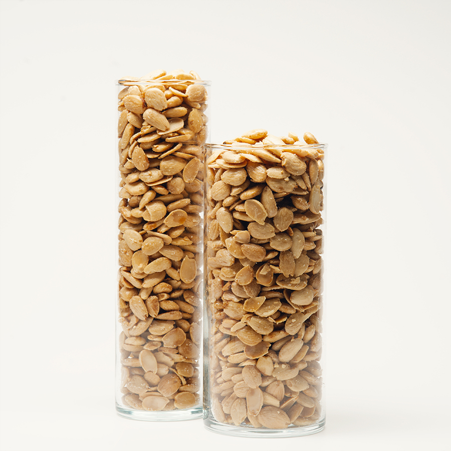 Single-varietal almond of late flowering sweet varieties, oil and sea salt